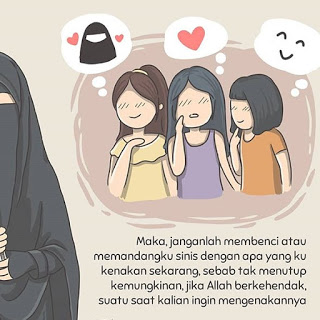 “Hai Nabi katakanlah kepada istri-istrimu, anak-anak perempuanmu dan istri-istri orang mu’min: “Hendaklah mereka mengulurkan jilbabnya ke tubuh mereka.” Yang demikian itu supaya mereka lebih mudah untuk dikenal, karena itu mereka tidak diganggu. Dan Allah adalah Maha Pengampun lagi Maha Penyayang.” (Al Ahzab: 59)